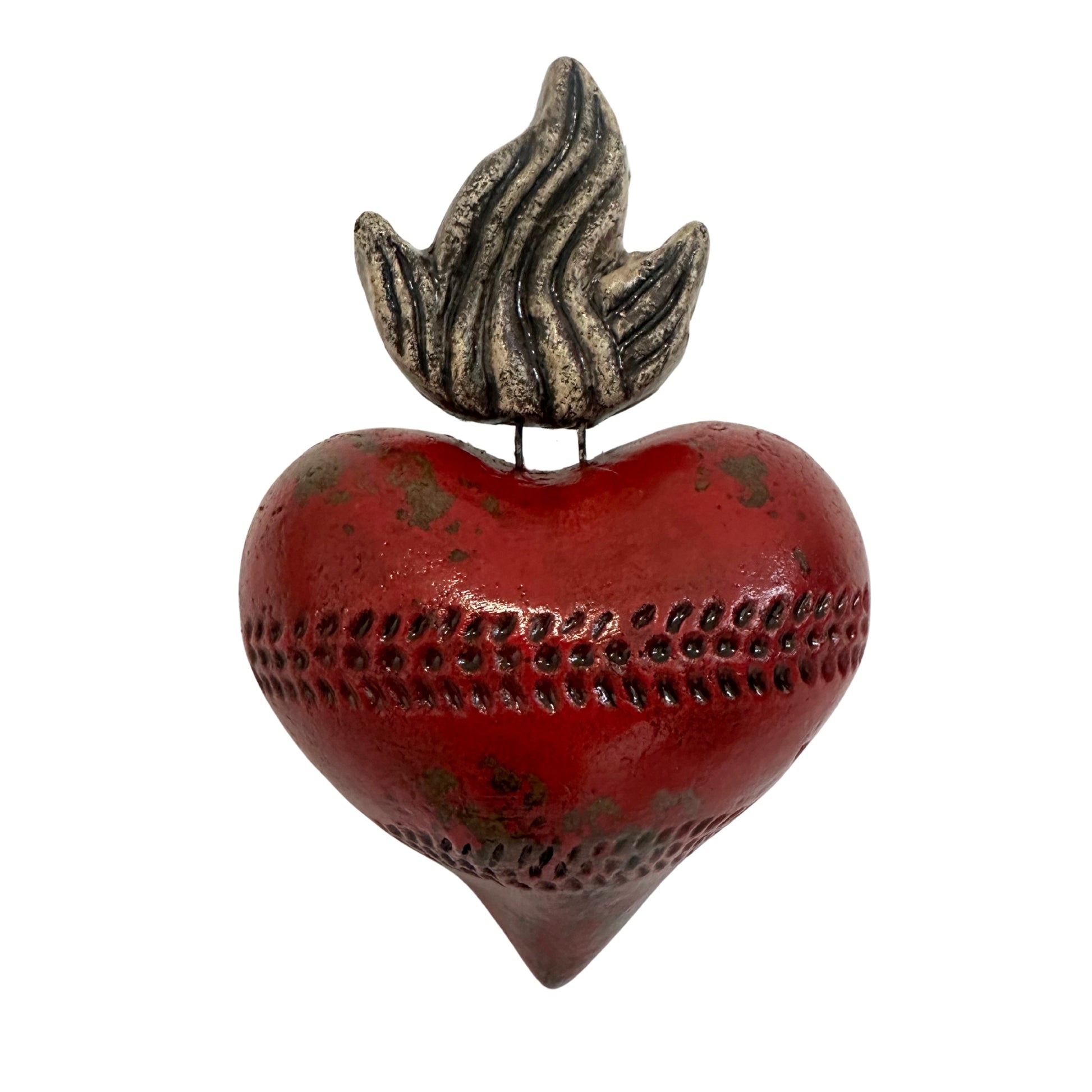 Folk Art Wall Heart w/ Flame handmade in Mexico 5.5"x8"